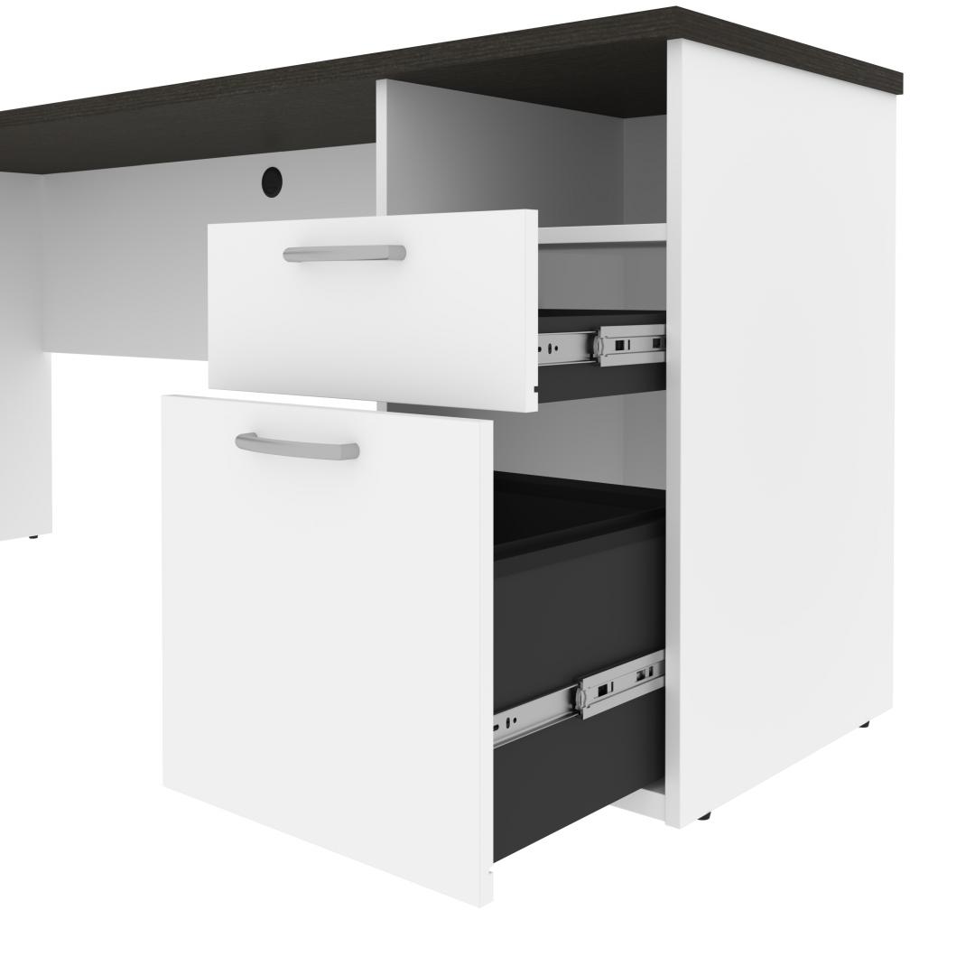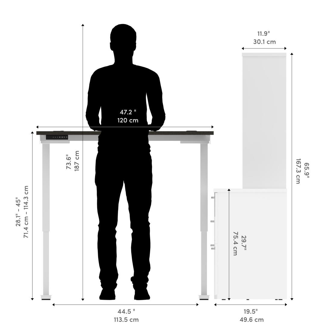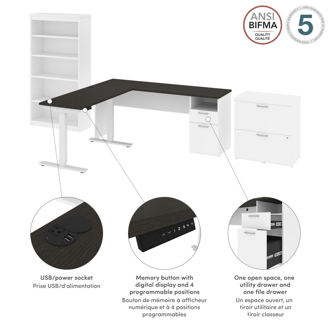 72W L-Shaped Standing Desk with Bookcase and File Cabinet