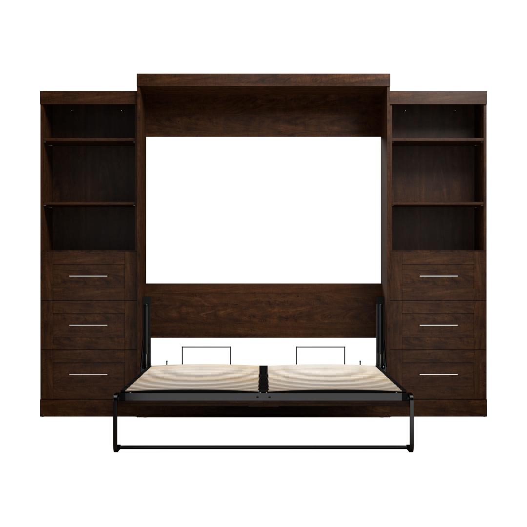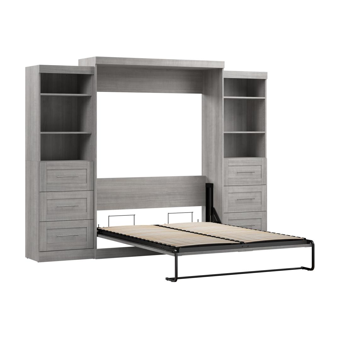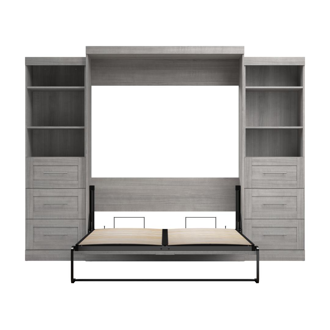 Queen Murphy Bed and 2 Shelving Units with Drawers (115W)