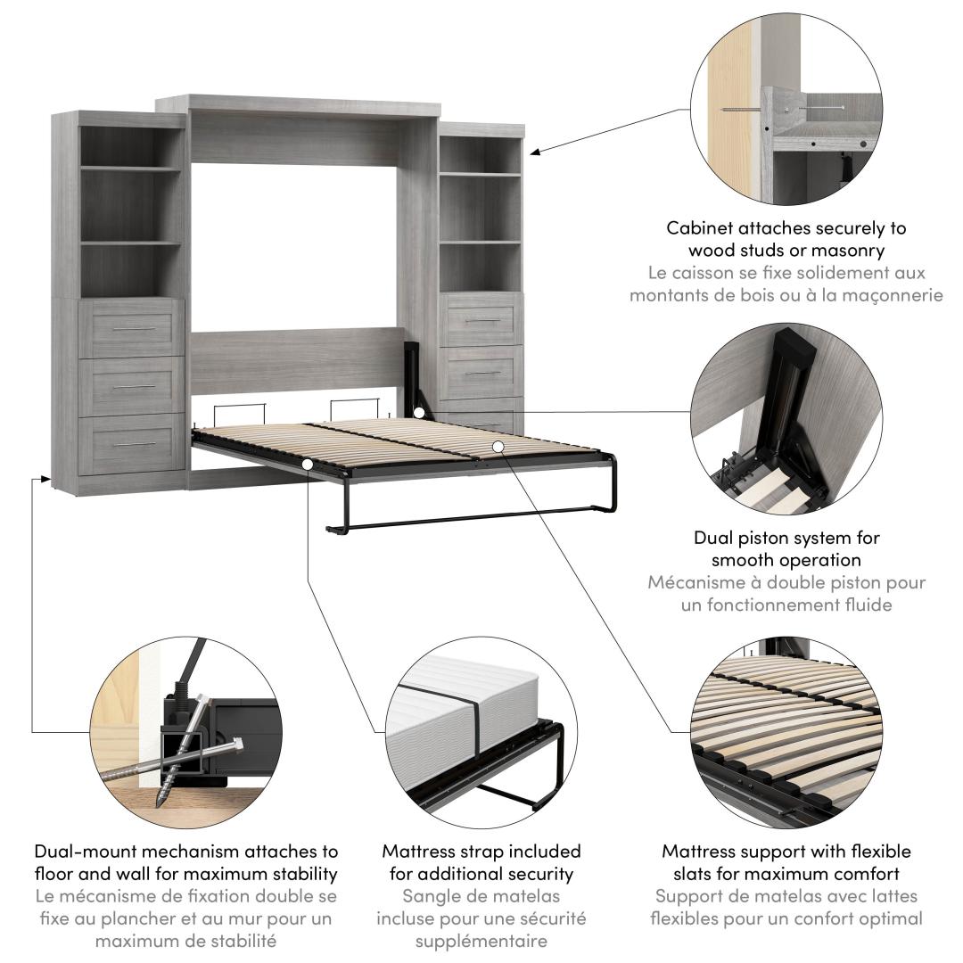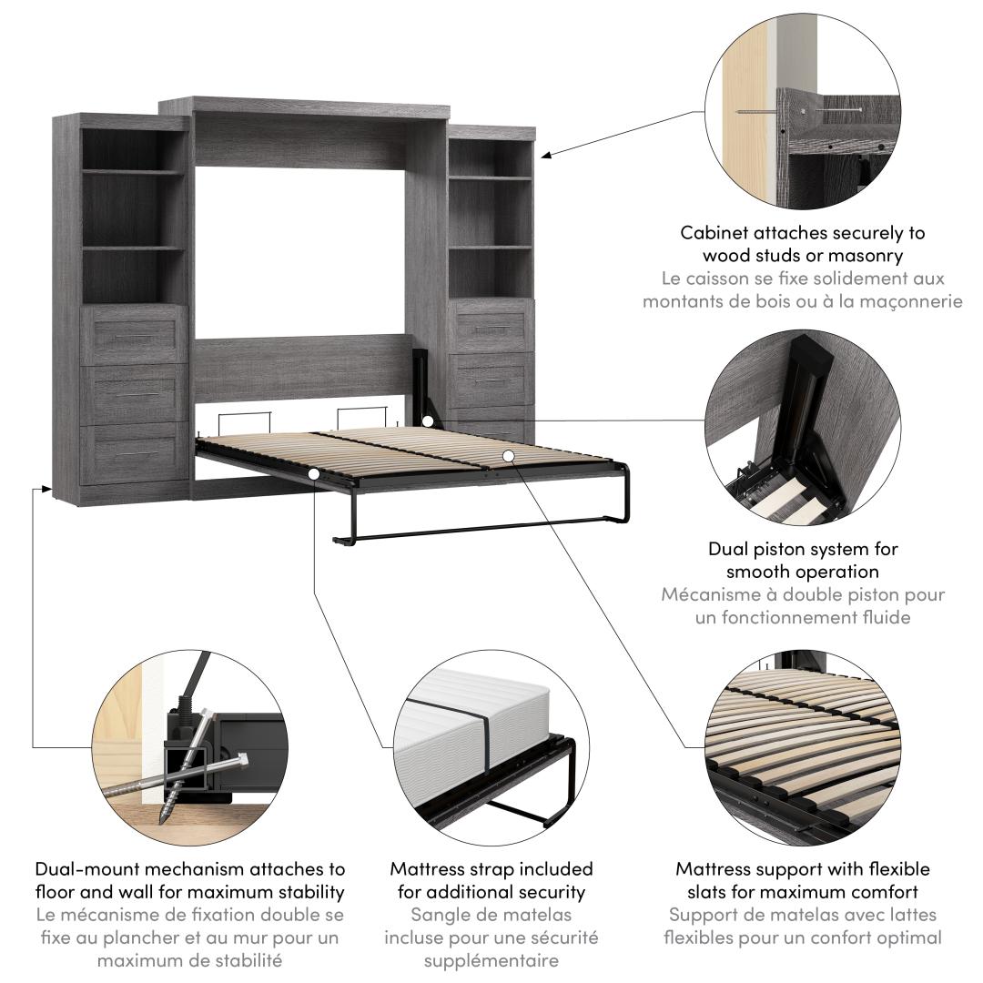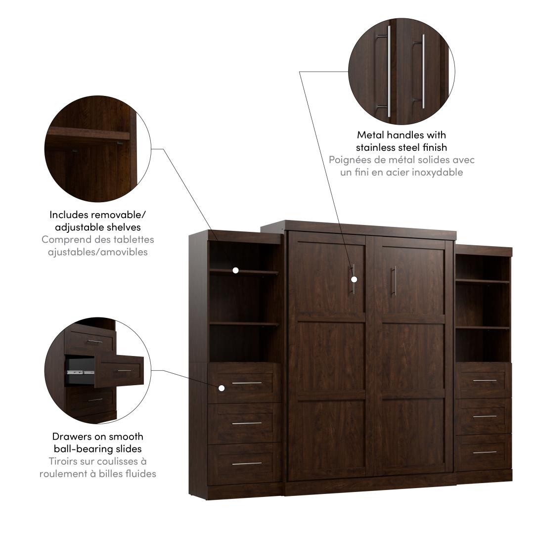 Queen Murphy Bed and 2 Shelving Units with Drawers (115W)