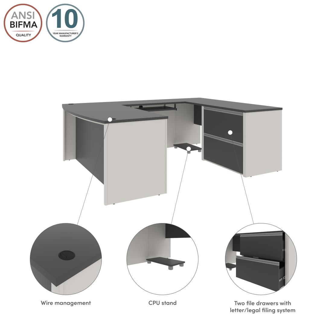 72W U-Shaped Executive Desk with Lateral File Cabinet