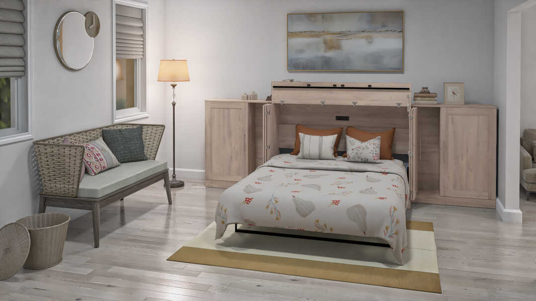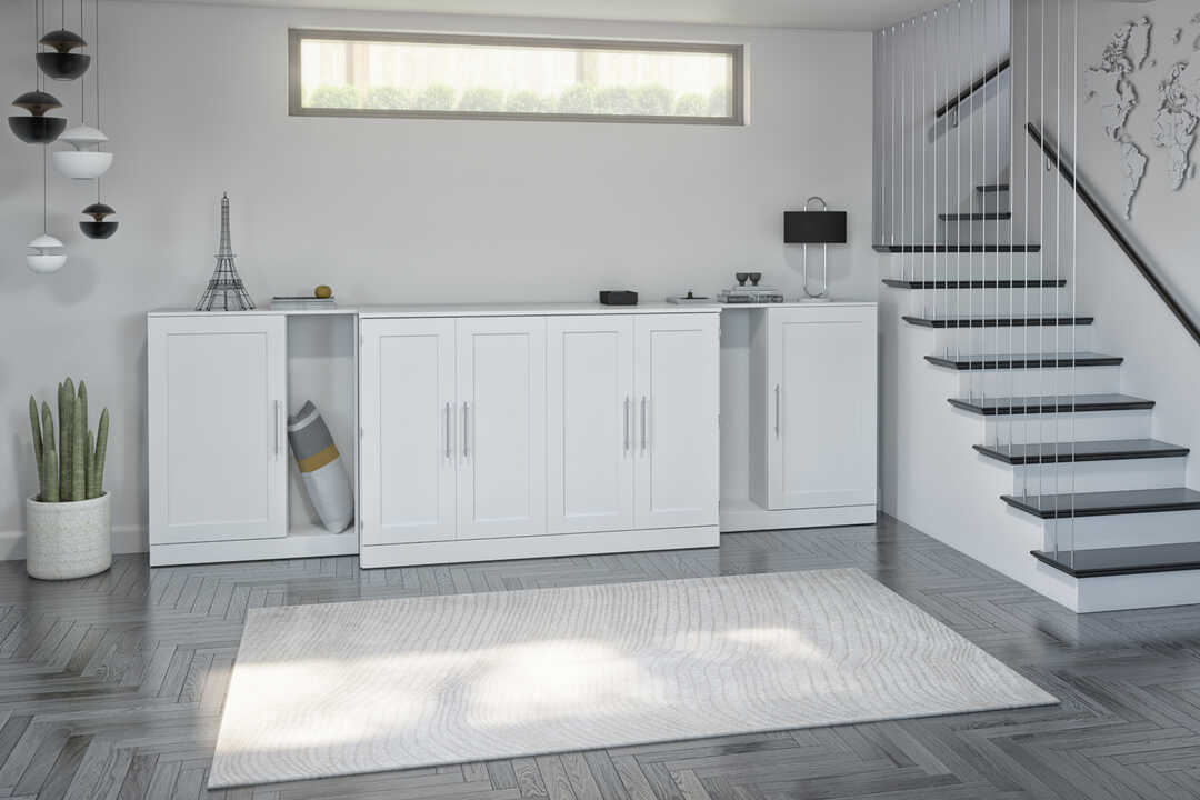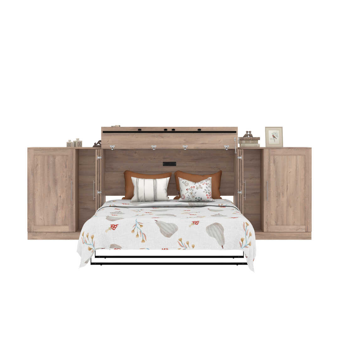 Queen Cabinet Bed with Mattress and Storage Cabinets (139W)