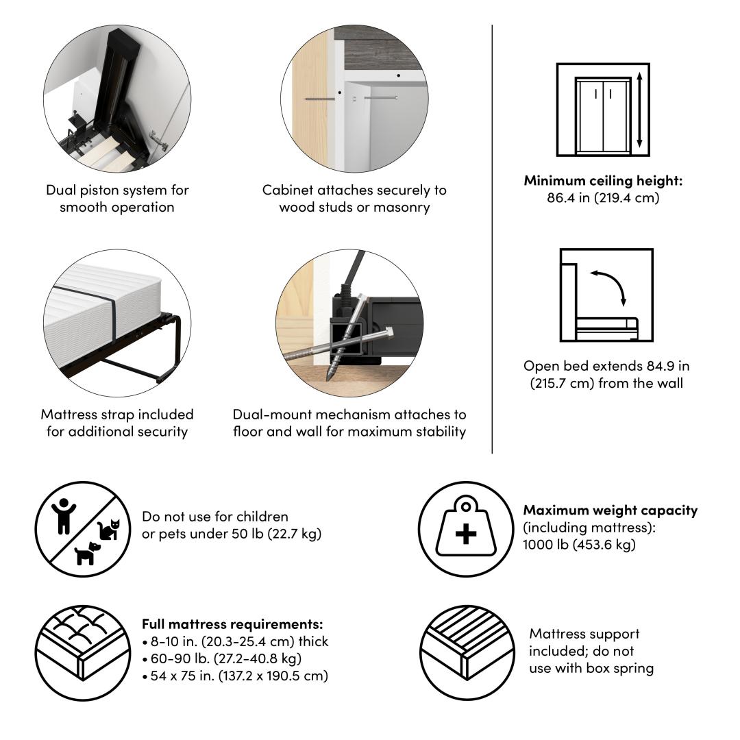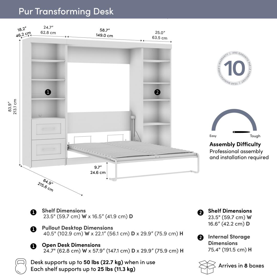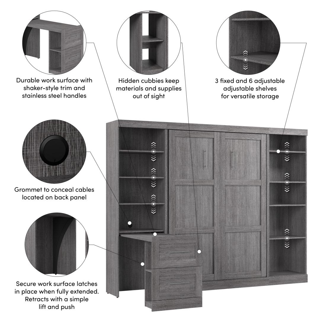 109W Full Size Murphy Bed with Pull-Out Desk and Storage