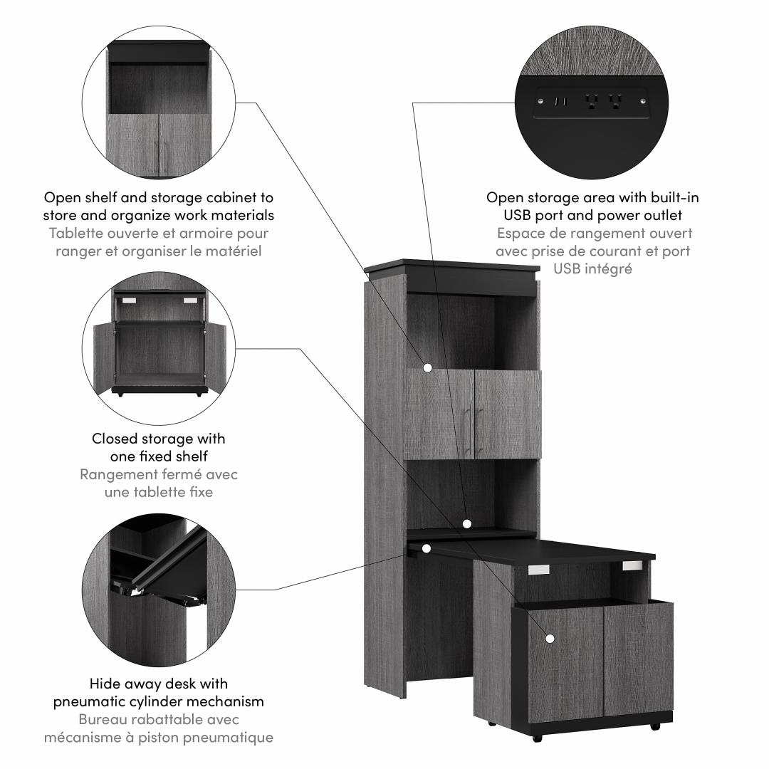 30W Tall Storage Cabinet with Doors and Fold-Out Desk