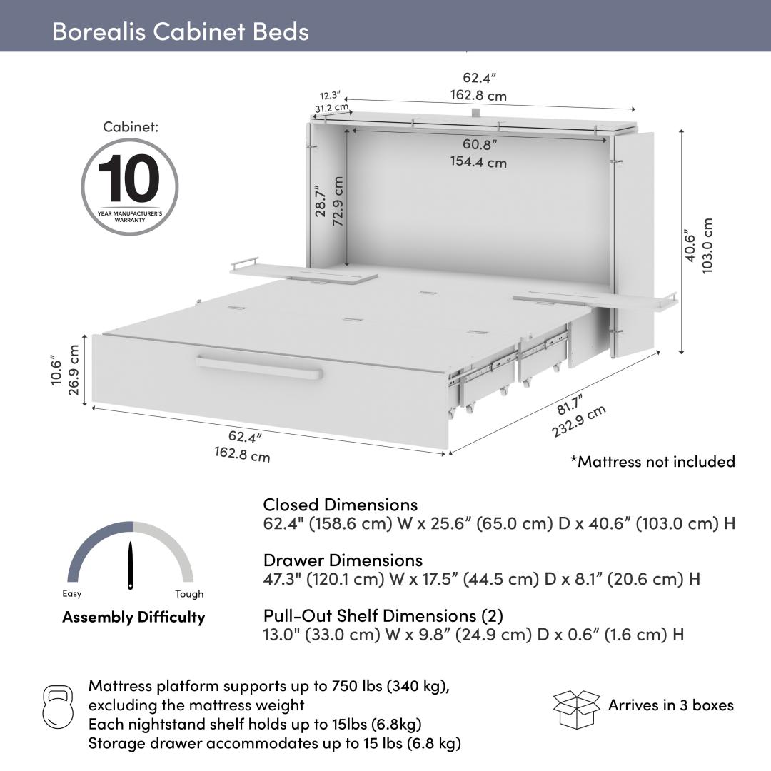 63W Queen Murphy Cabinet Bed with Pullout Drawer