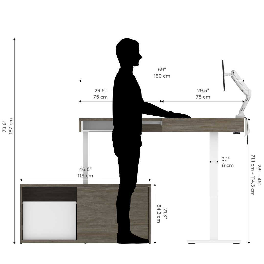 81W L-Shaped Standing Desk with Dual Monitor Arm and Credenza