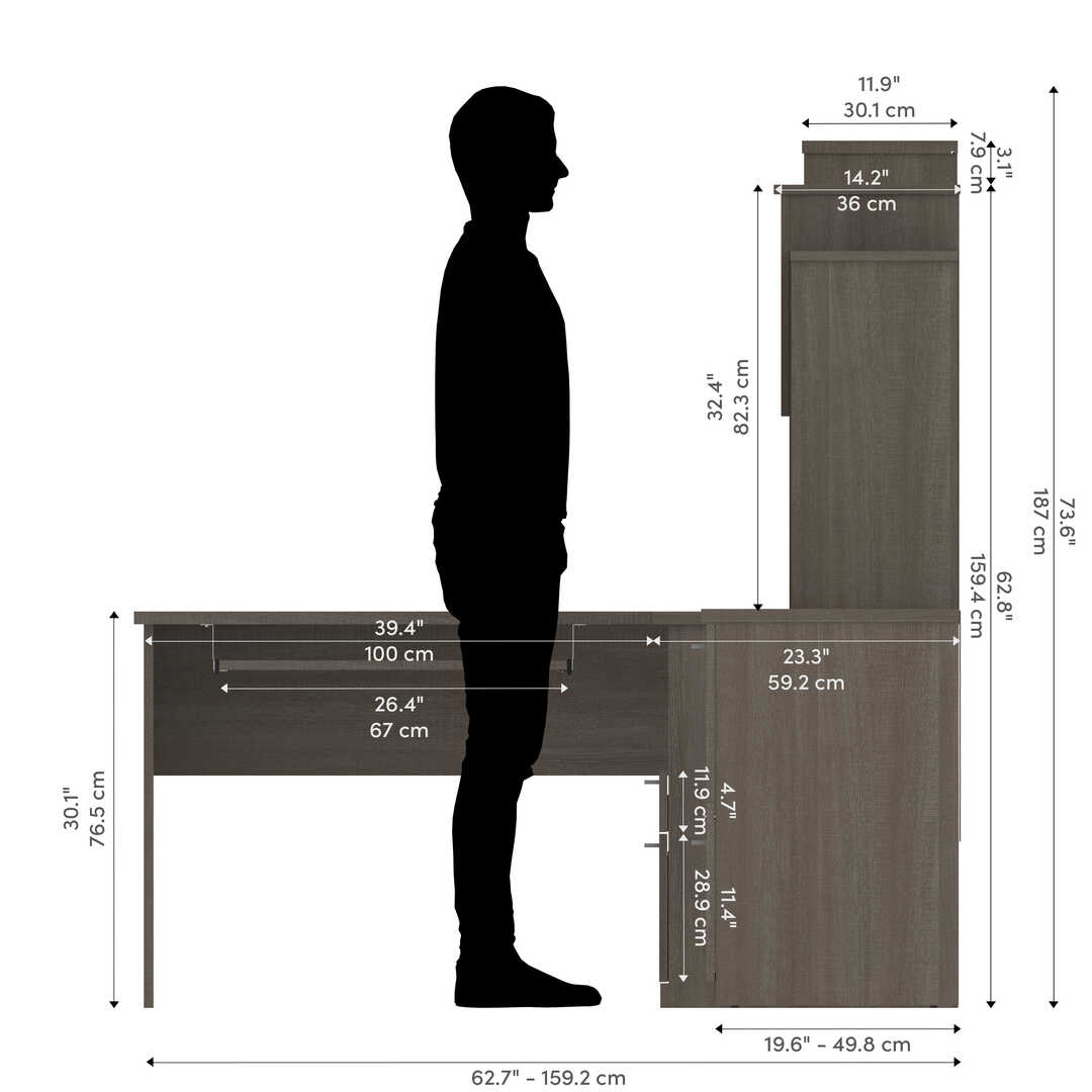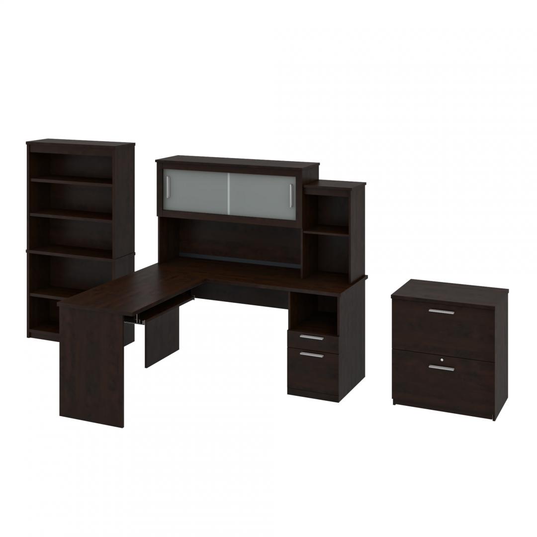 65W L-Shaped Desk with Hutch, Lateral File Cabinet, and Bookcase