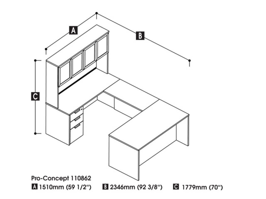 U-Shaped Executive Desk with High Hutch and Assembled Pedestal