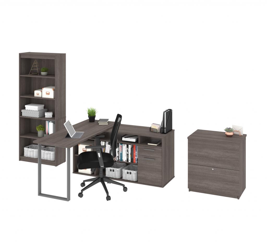 60W L-Shaped Desk with Lateral File Cabinet and Bookcase