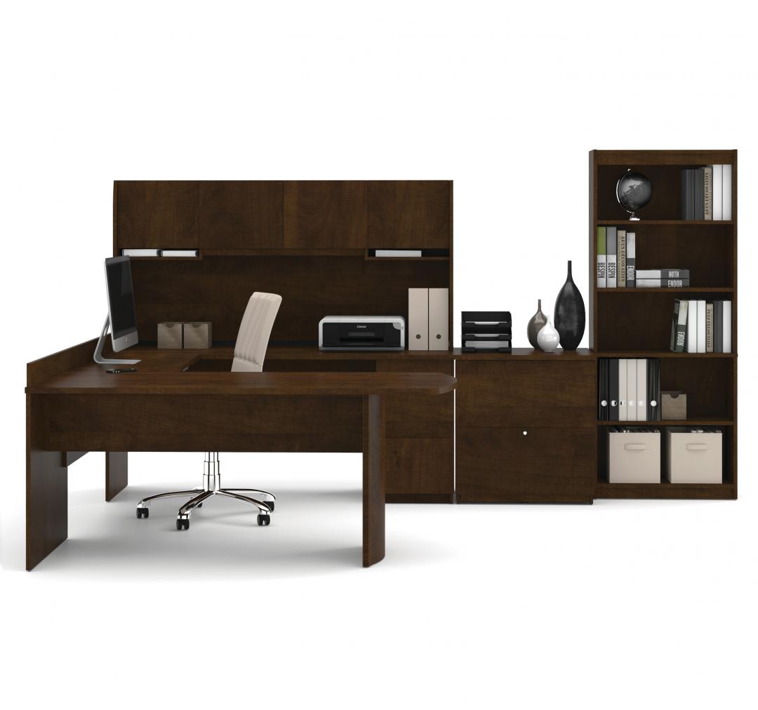 U-Shaped Executive Desk with Lateral File Cabinet and Bookcase