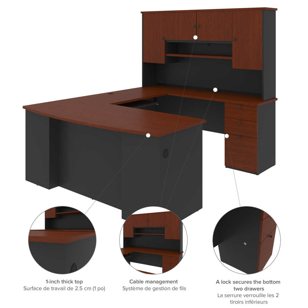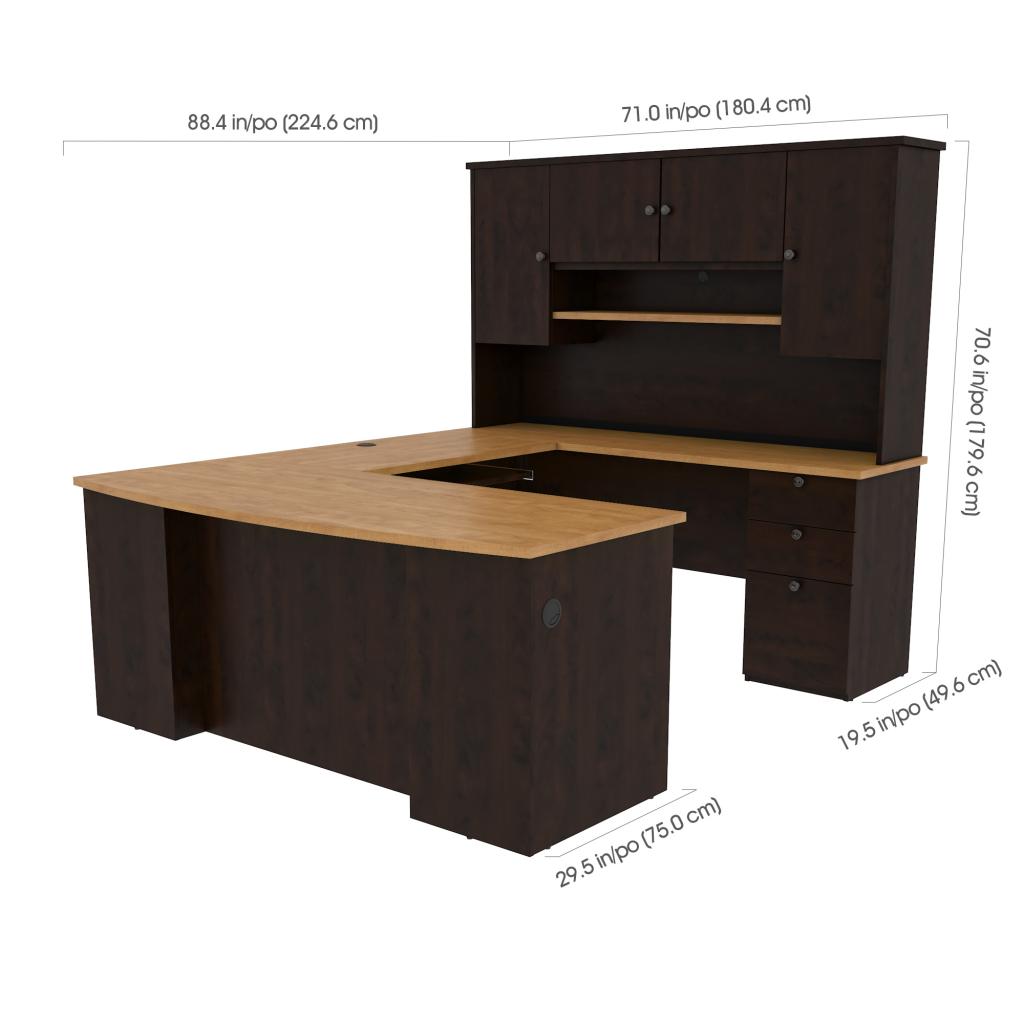 71W U or L-Shaped Executive Desk with Pedestal and Hutch