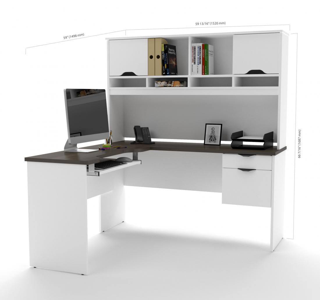 3-Piece set including an L-shaped desk with hutch, a lateral file cabinet, and a bookcase