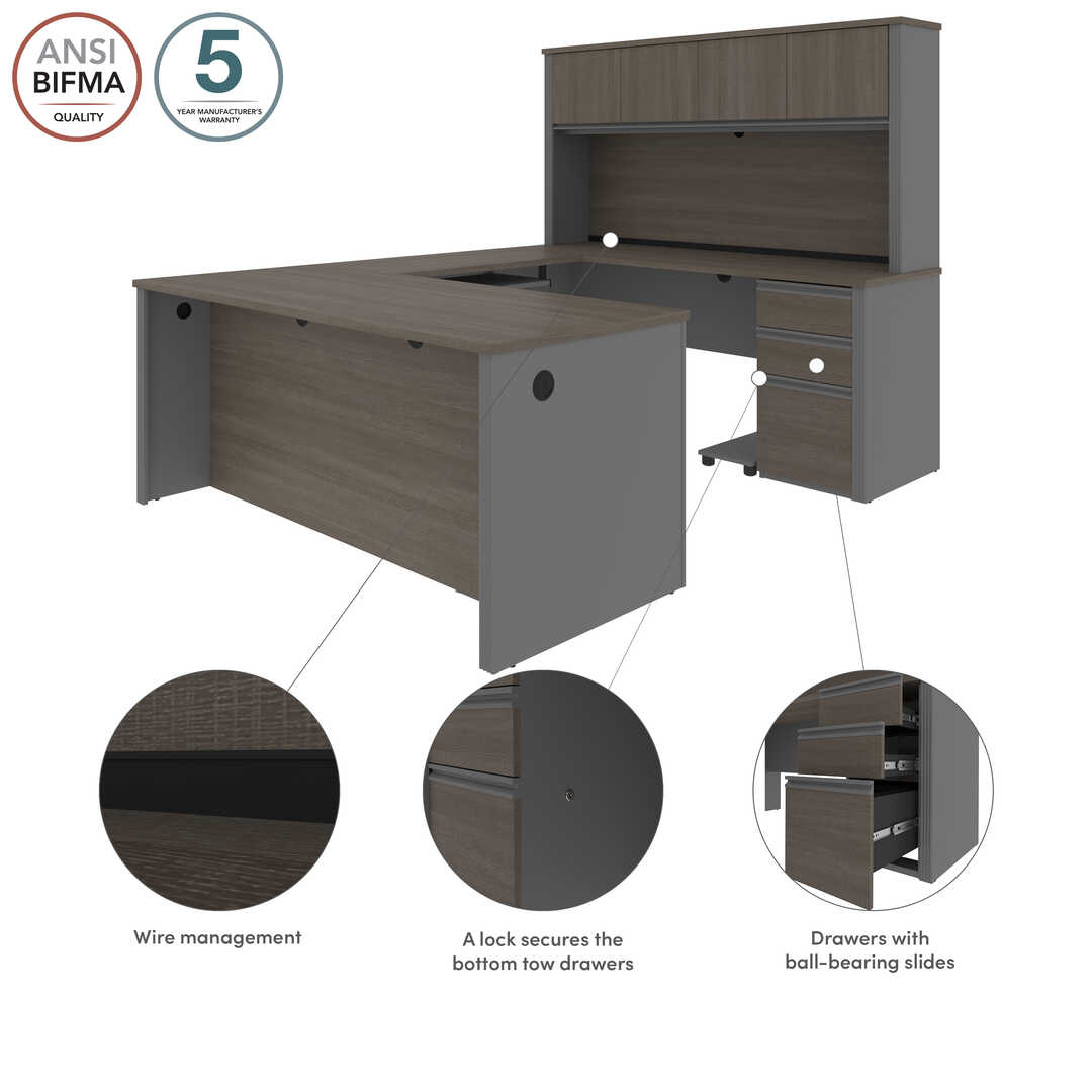 72W U-Shaped Executive Desk with 2 Pedestals and Hutch