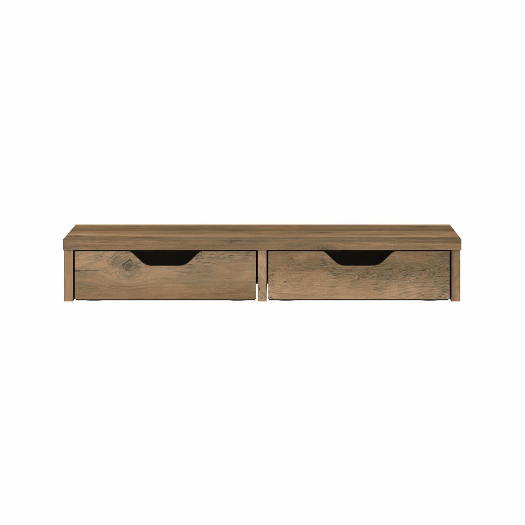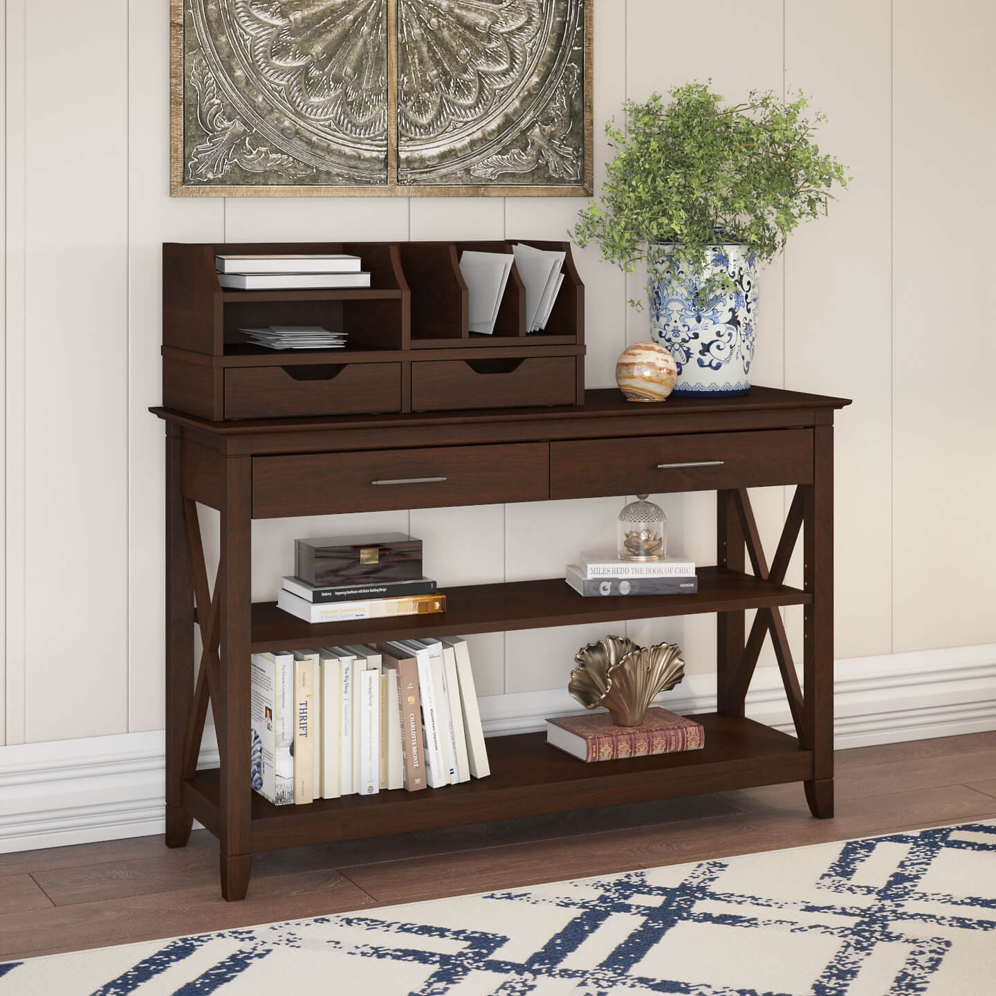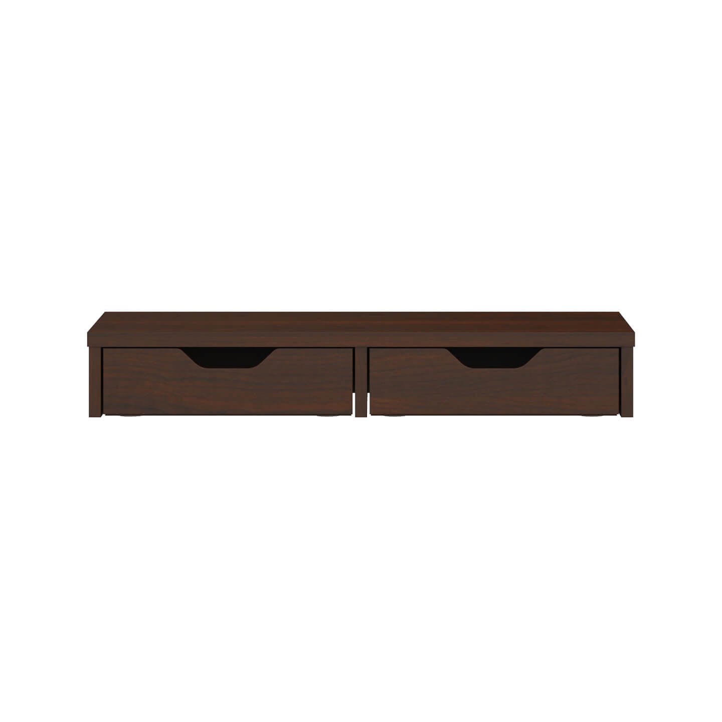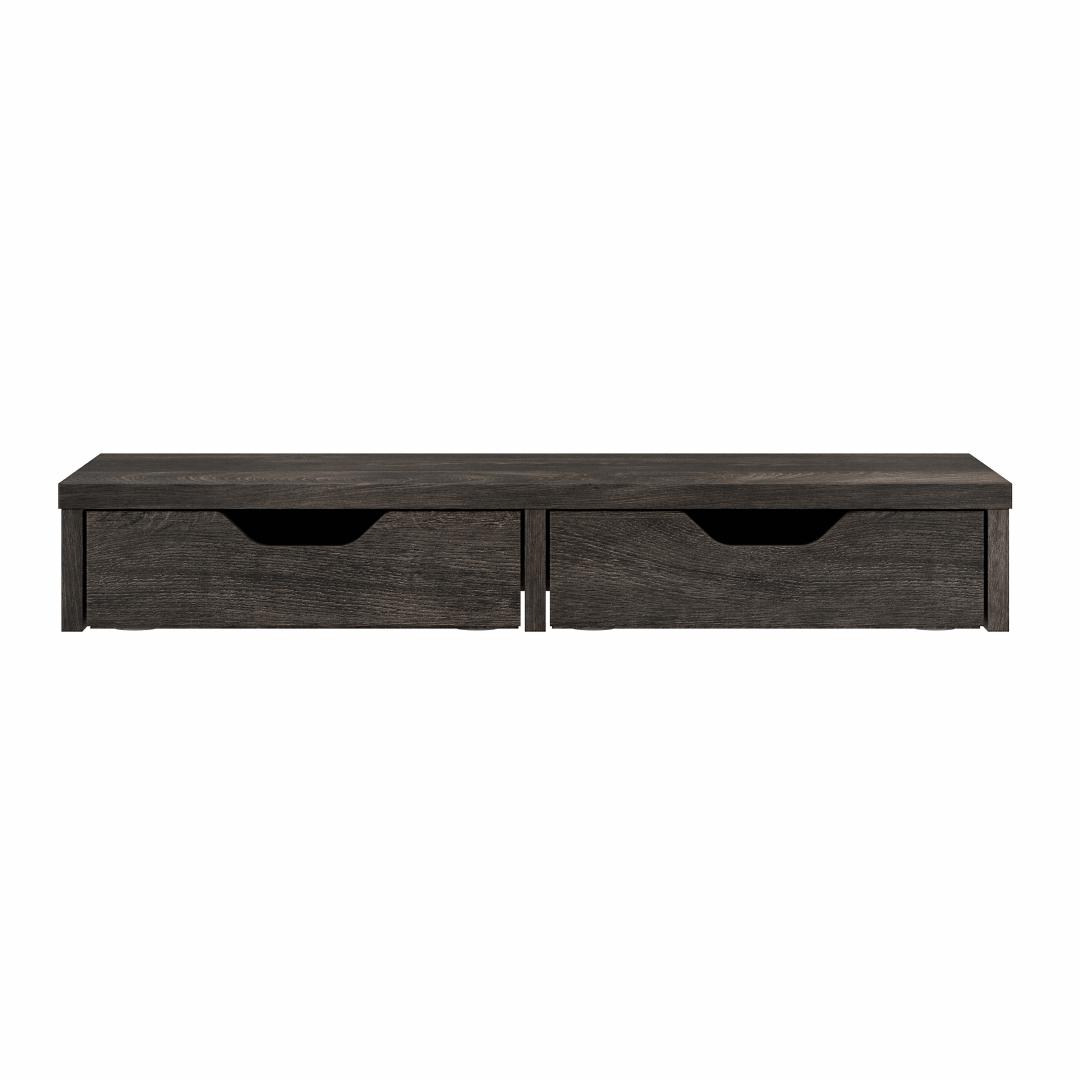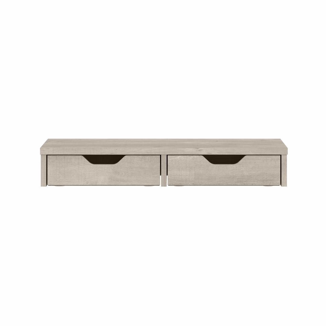 The Bush Furniture Universal Desktop Organizer with Drawers offers a practical solution for keeping your home´s workspace in order. Take advantage of the two low-profile storage drawers to help manage your writing utensils, notepads and other small office supplies. The bottom of the desk drawers are finished with felt to avoid scratching the work surface. This Organizer can be used on its own or combined with a coordinating Desktop Organizer with Shelves (sold separately) for additional office storage capacity. It also works well as a monitor stand to lift your computer´s screen to a more comfortable level. Measuring 27W x 13D x 4H, the Desk Organizer with Drawers fits on a variety of Bush Furniture Desks, Storage and Lateral File Cabinets (sold separately) and is finished on all sides to look great facing any direction. Choose from several attractive finishes to find the perfect look for your space. The Desktop Organizer with Drawers is tested to meet ANSI/SOHO quality standards for safety and performance and is backed by the Bush Furniture 1 Year Manufacturer´s Warranty.