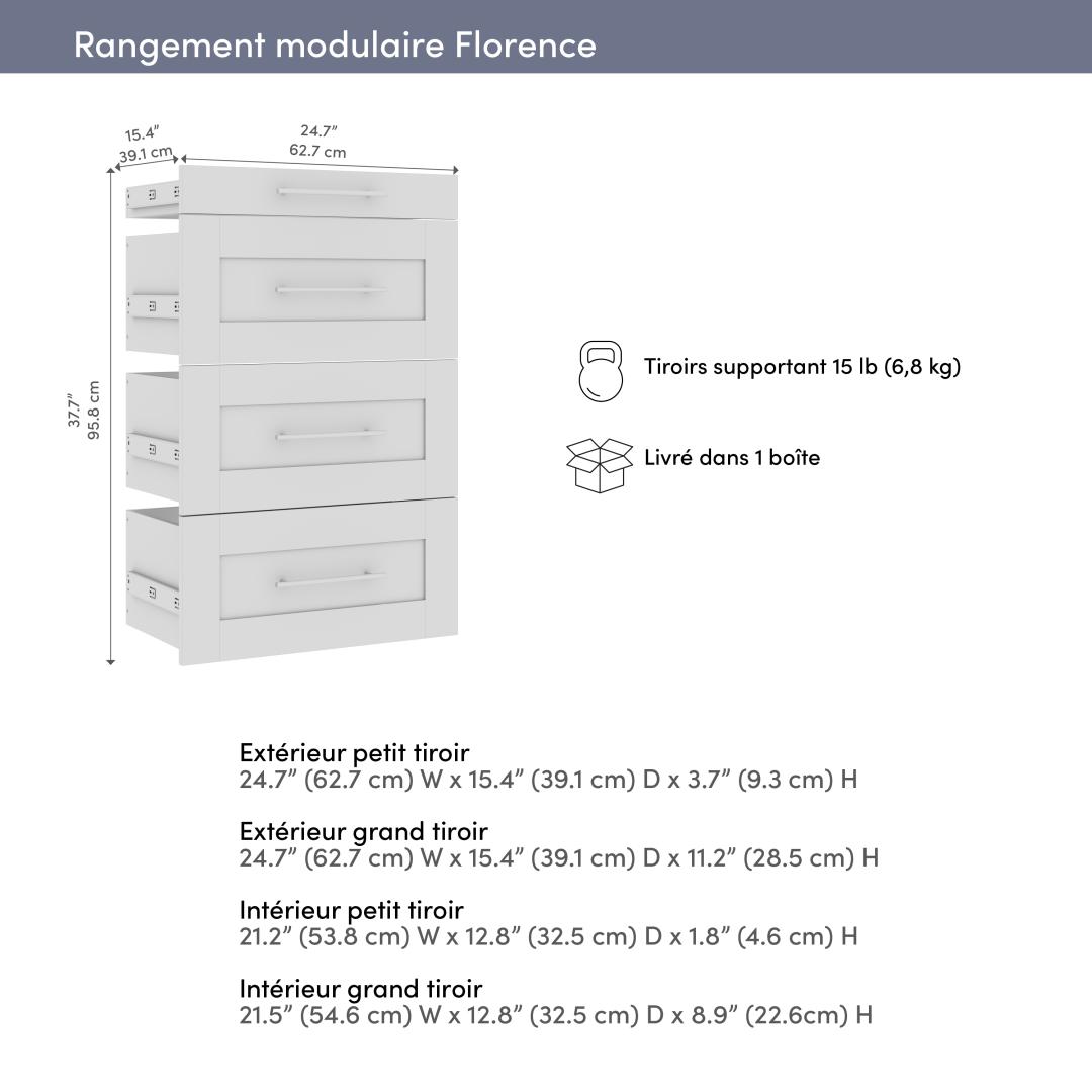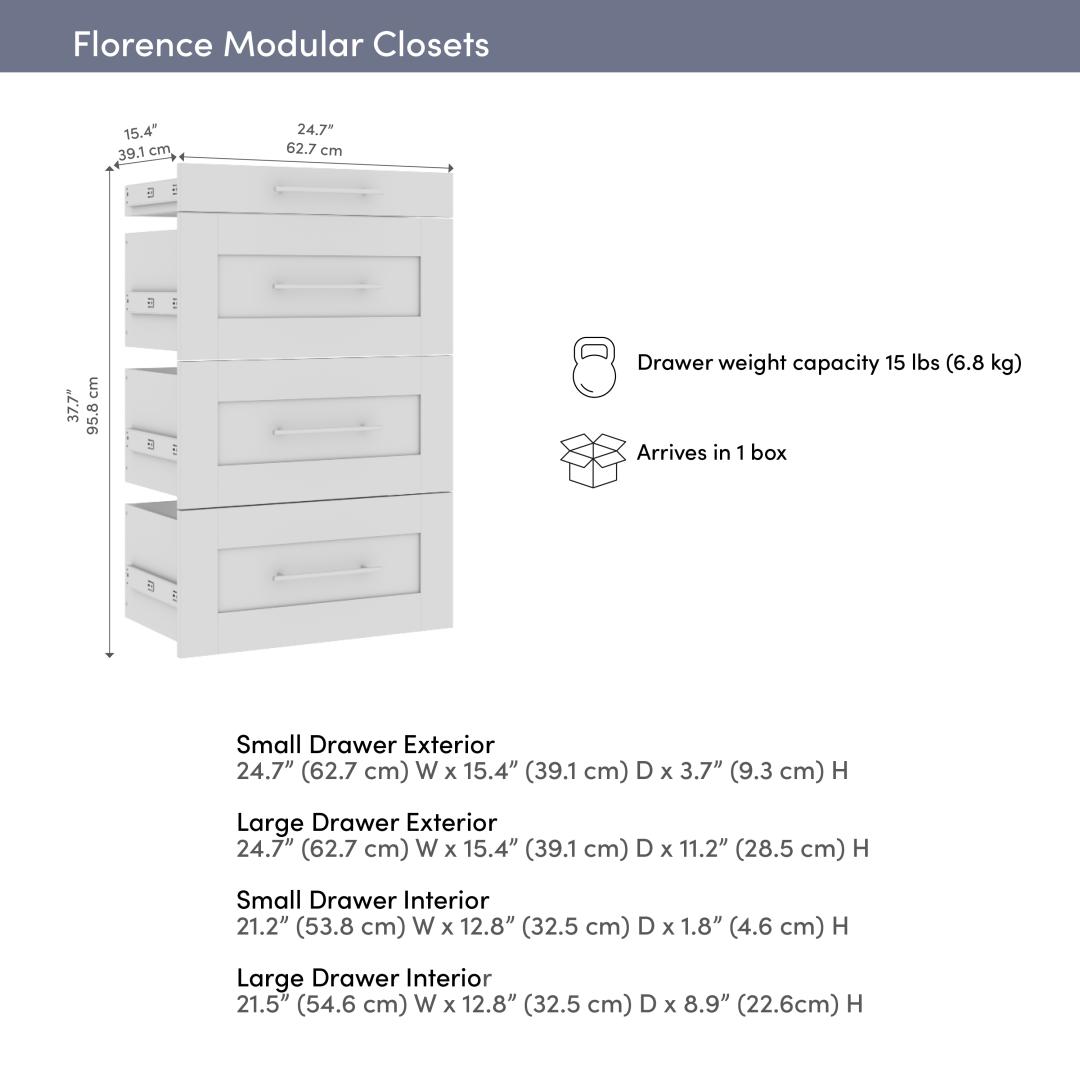 4 Drawer Set for Florence 25W x 16D Modular Reach-In or Walk-In Closet System Tower with Shelves, Shaker Style