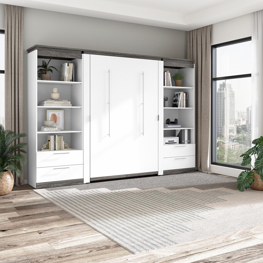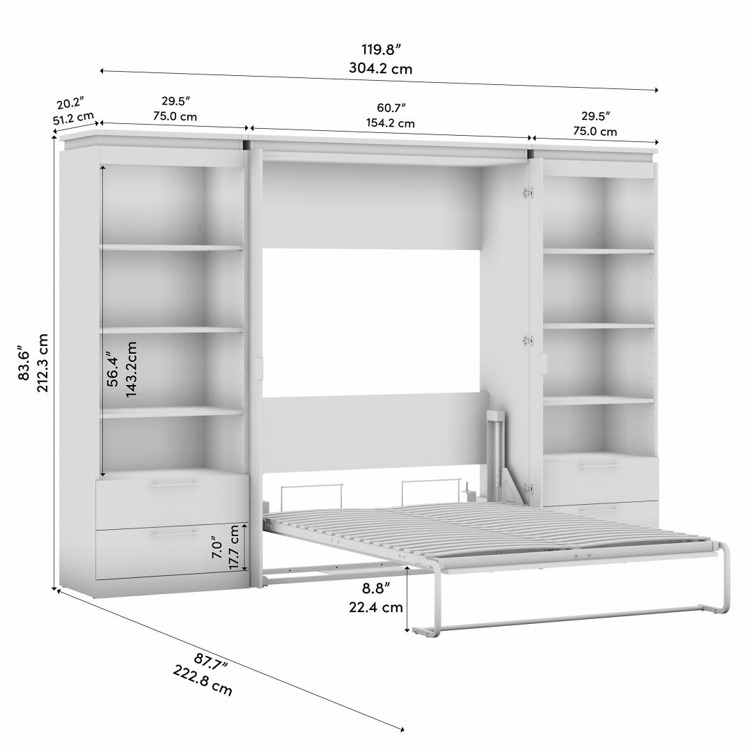 Full Murphy Bed with Shelves and Drawers (120W)