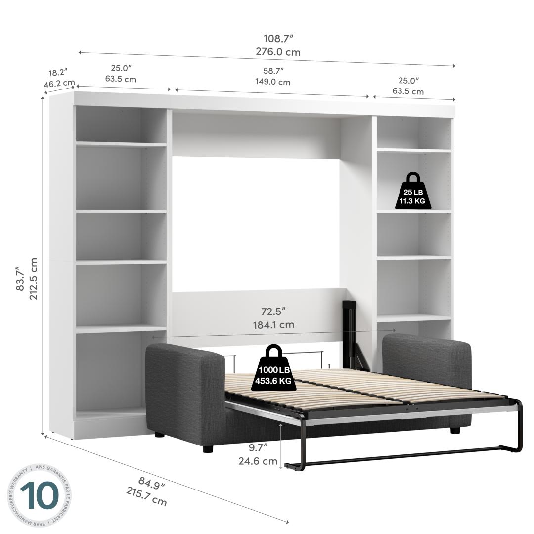 Full Murphy Bed with Sofa and Shelving Units (109W)