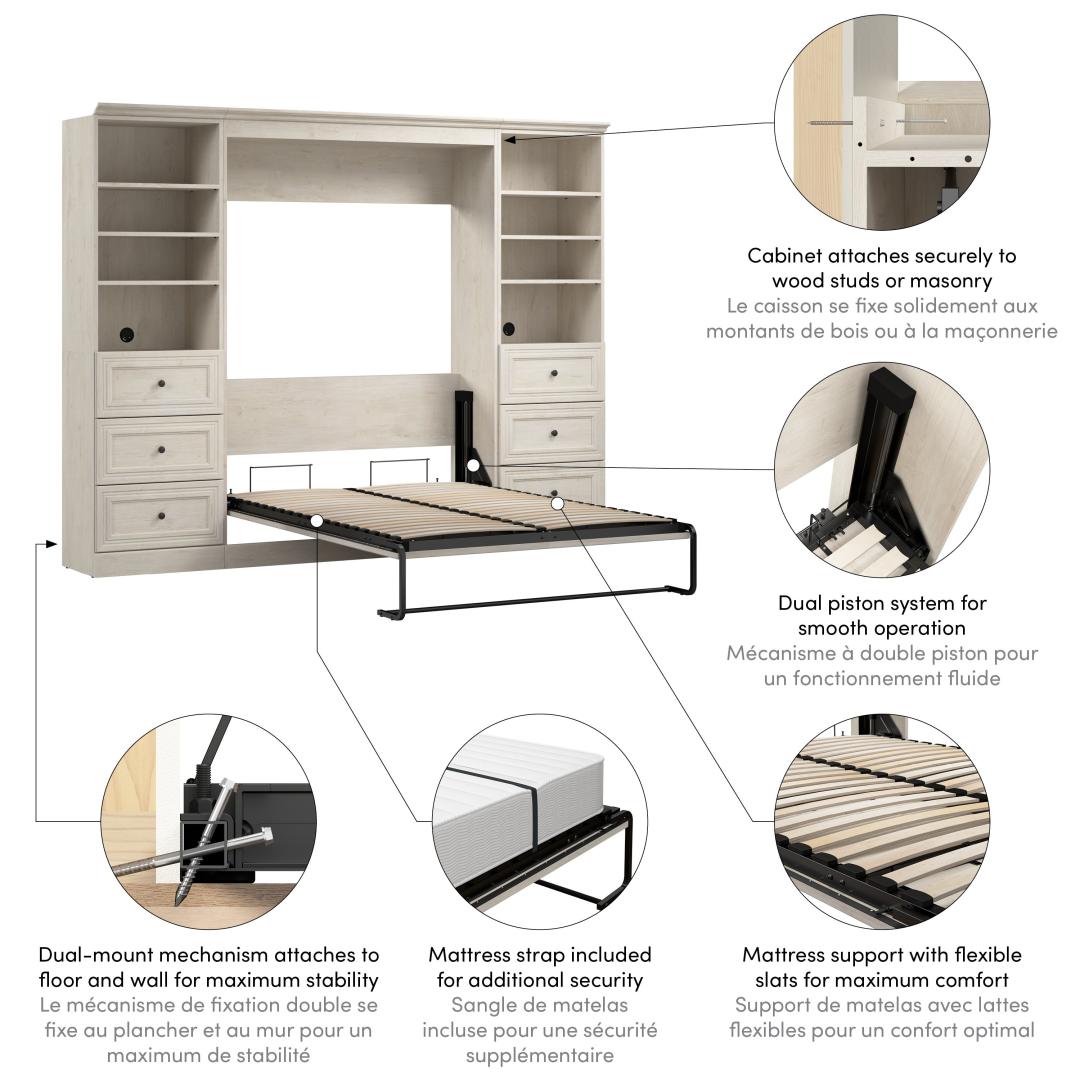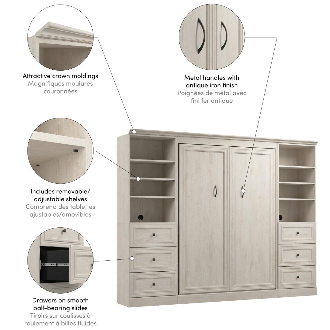 Full Murphy Bed and 2 Closet Organizers with Drawers (109W)
