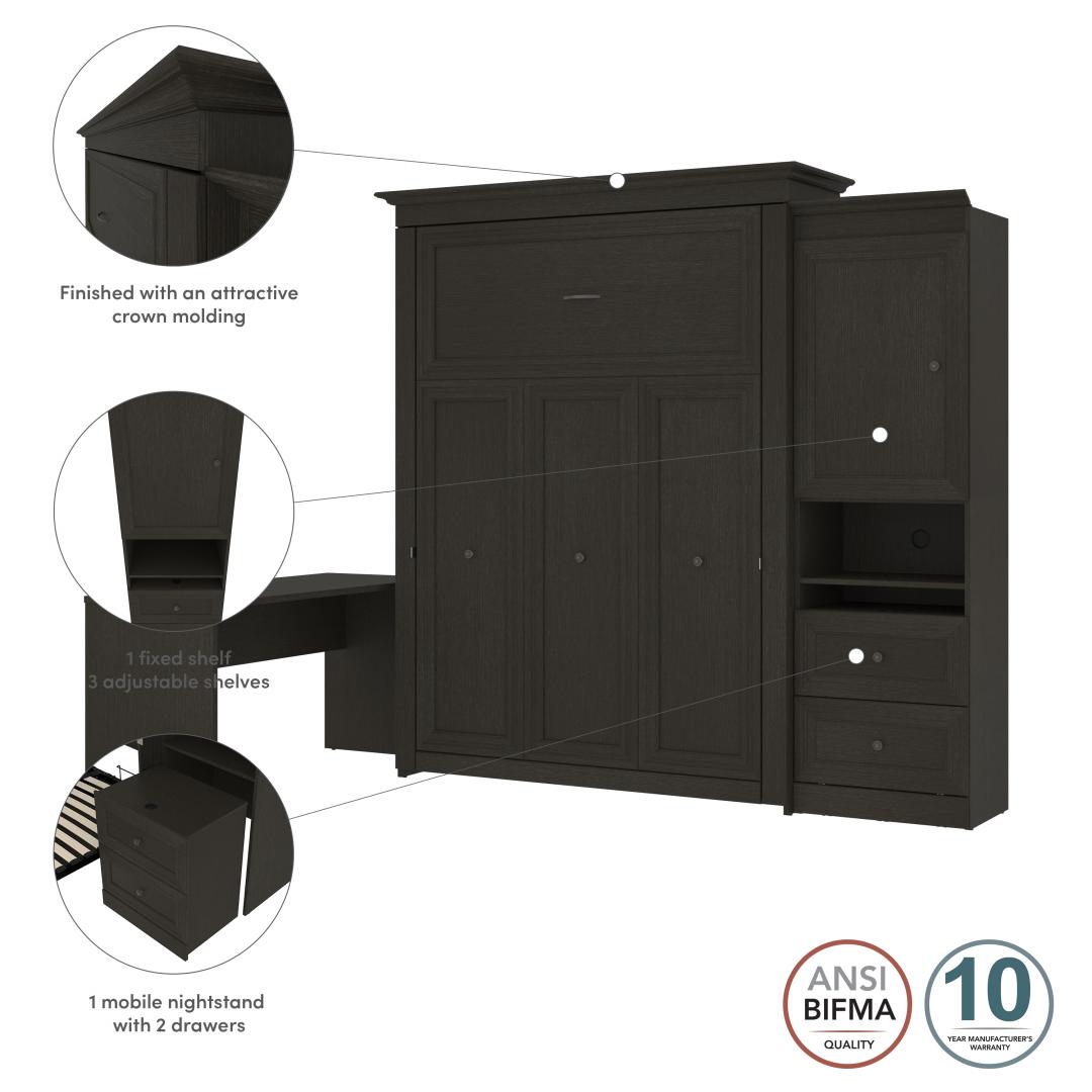 Queen Murphy Bed and 1 Storage Unit with Mobile Nightstand and Desk (118”)