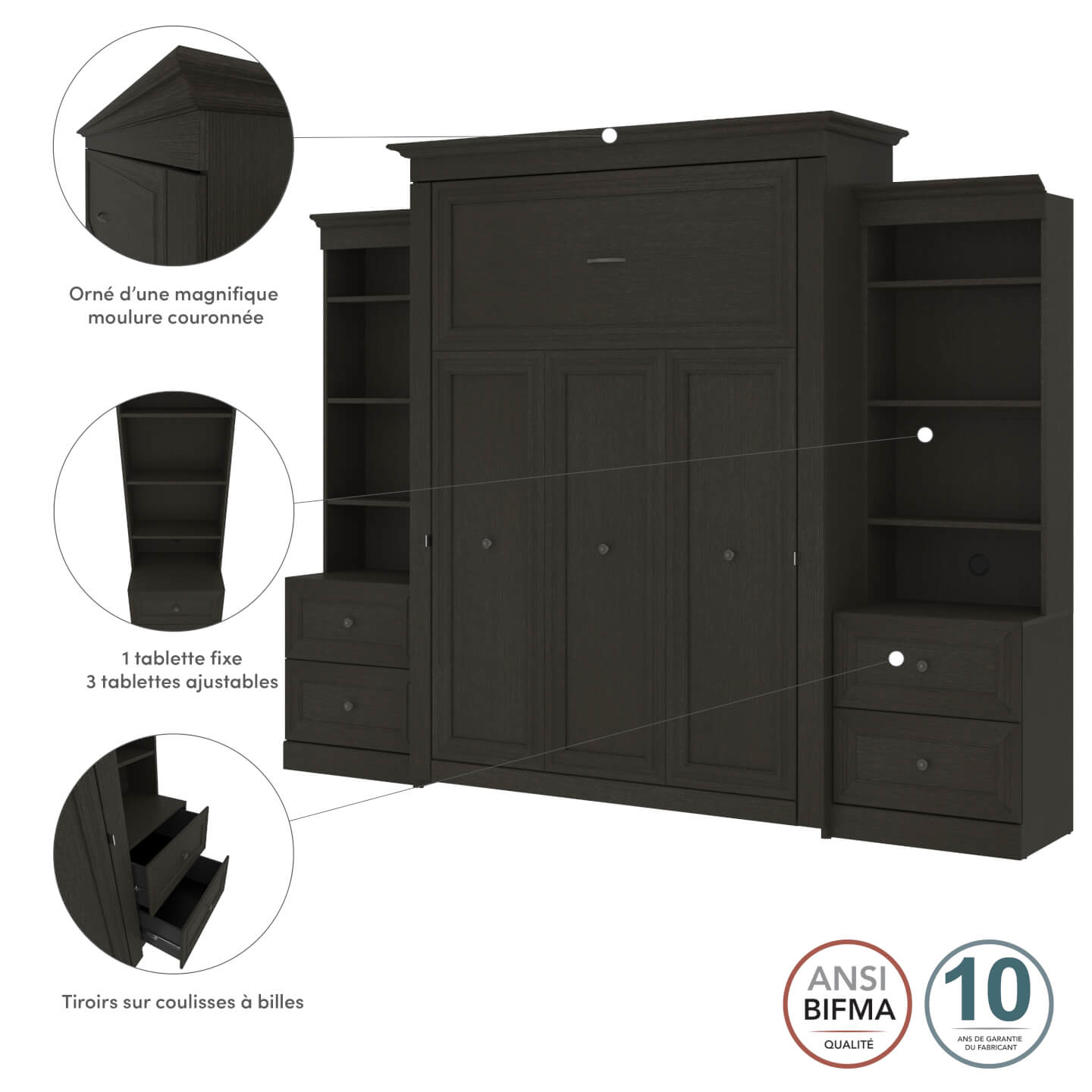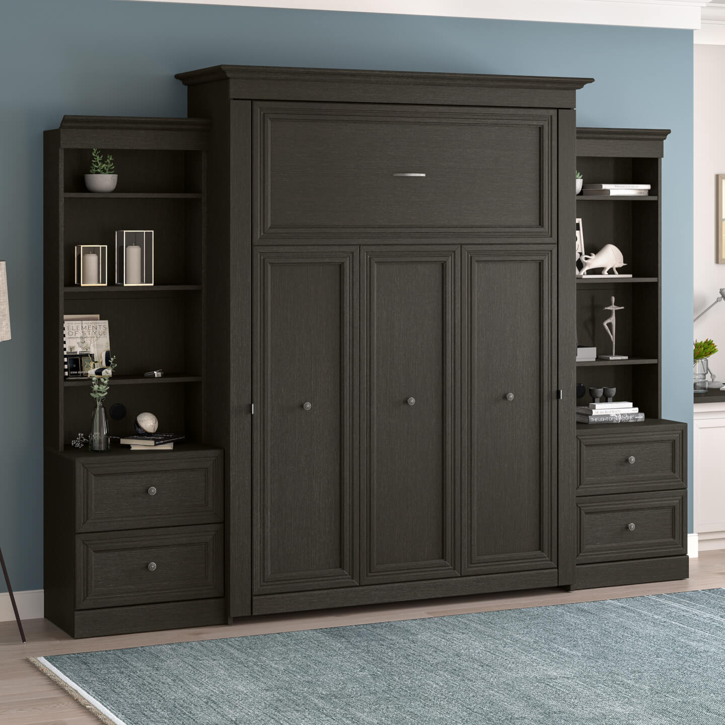 Queen Murphy Bed and Two Shelving Units with 2 Drawers (115W)
