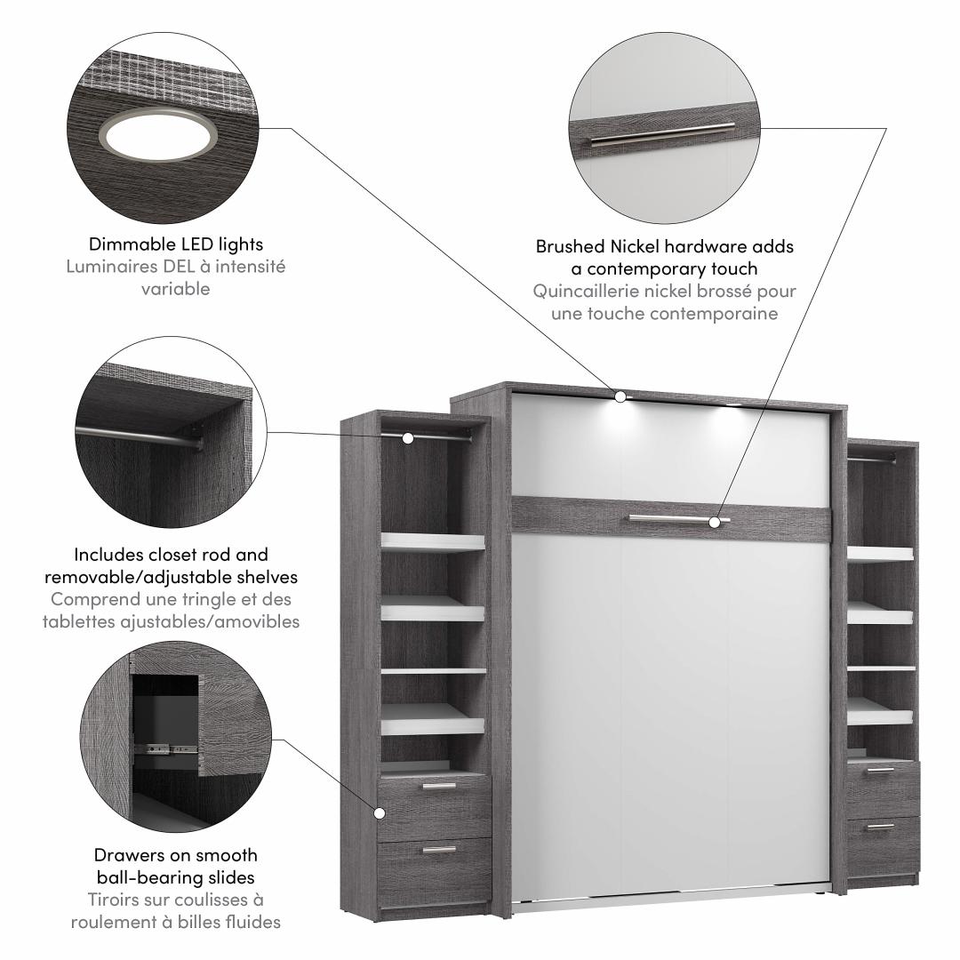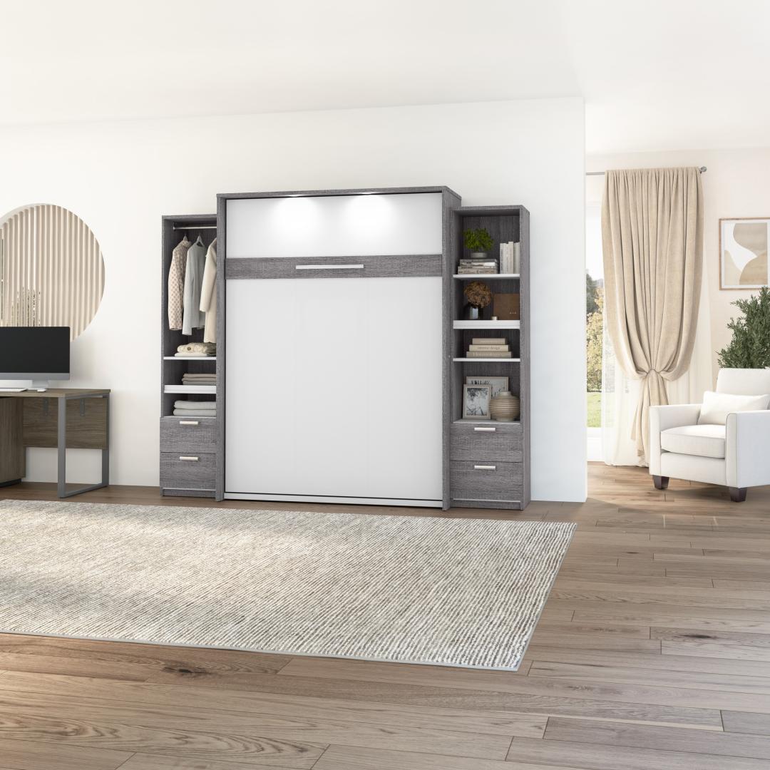 Queen Murphy Bed and 2 Narrow Closet Organizers with Drawers (105W)