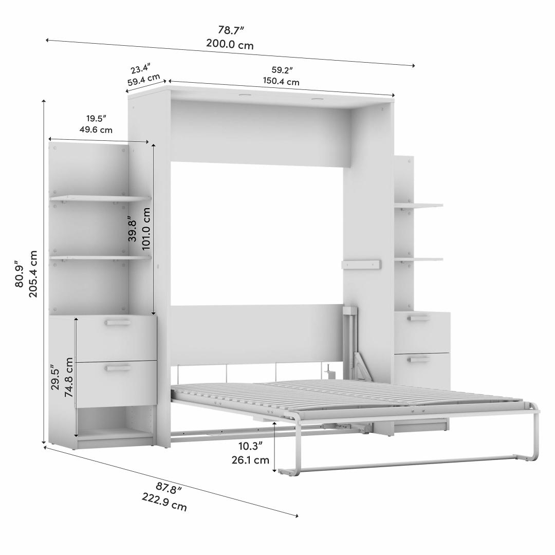 Full Murphy Bed with Nightstand and Floating Shelves (79W)