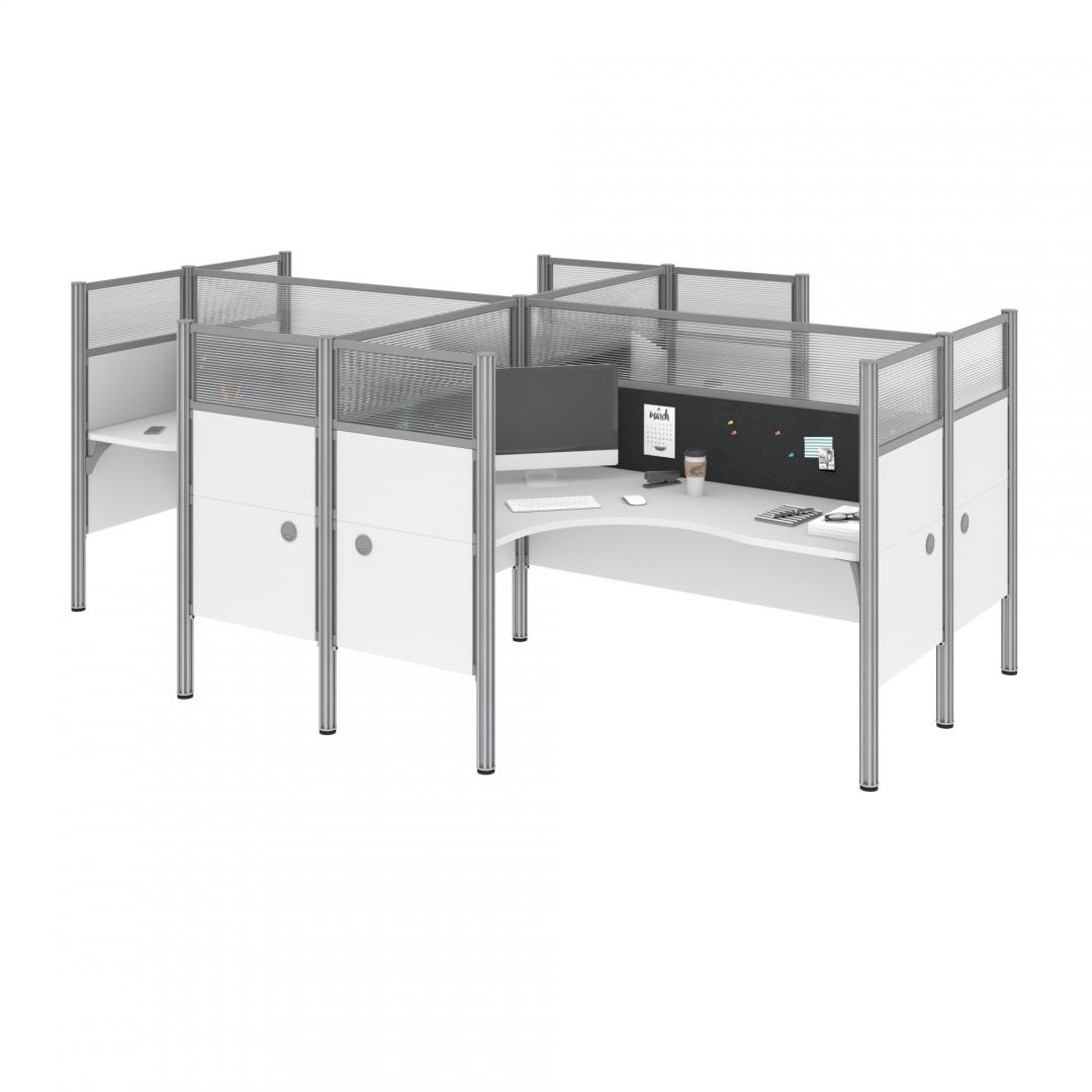 4-Person Office Cubicles With Gray Tack Boards and High Privacy Panels
