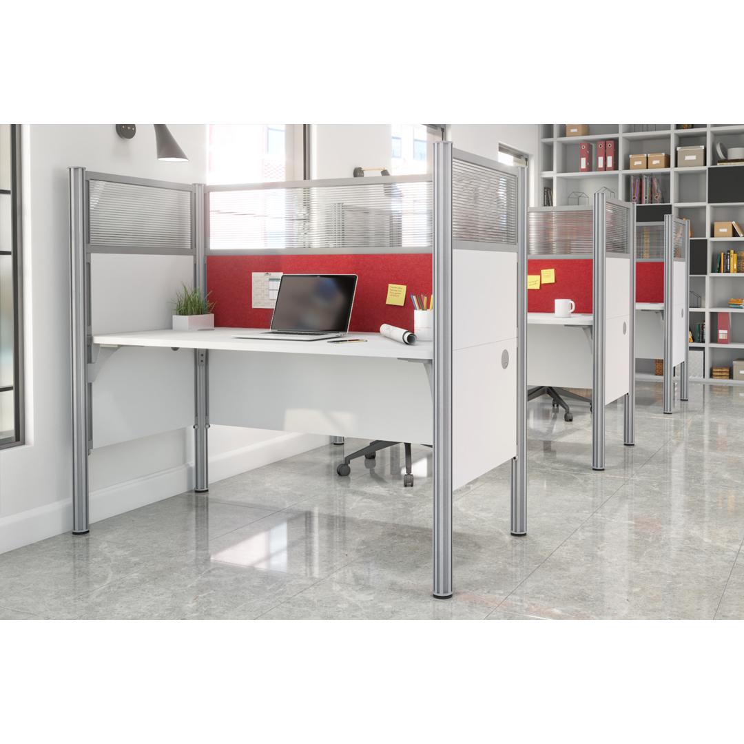 63W Single Office Cubicle with Red Tack Board and High Privacy Panels