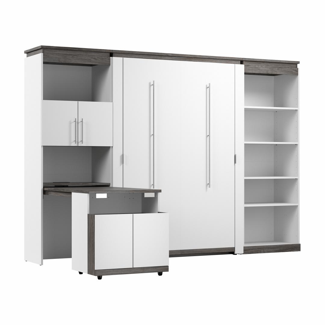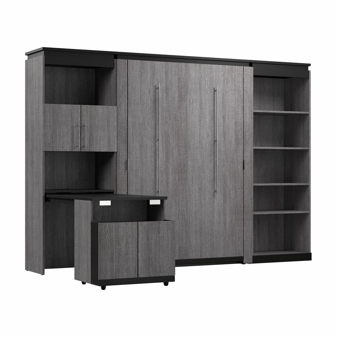 Full Murphy Bed with Shelves and Storage Cabinet with Fold-Out Desk (120W)