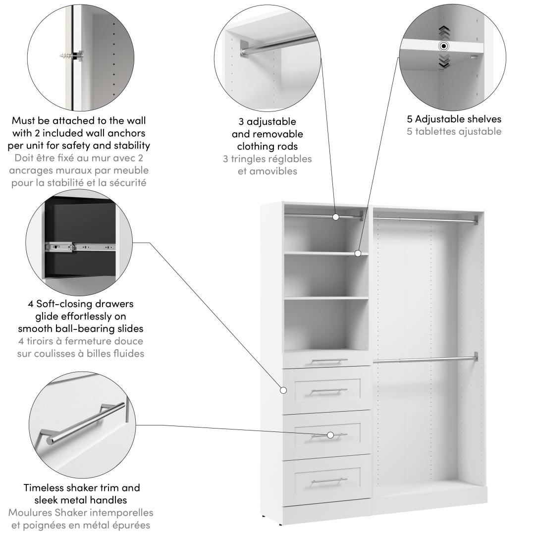 Modular Closet System with Shelves, Drawers & Clothing Rods, Shaker Style, 61W x 16D