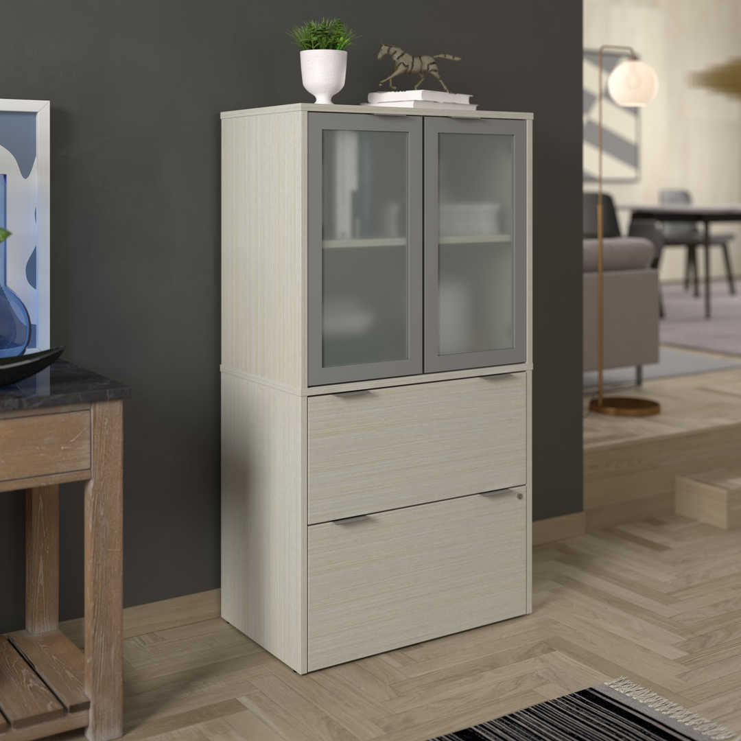 Lateral File Cabinet with Frosted Glass Doors Hutch