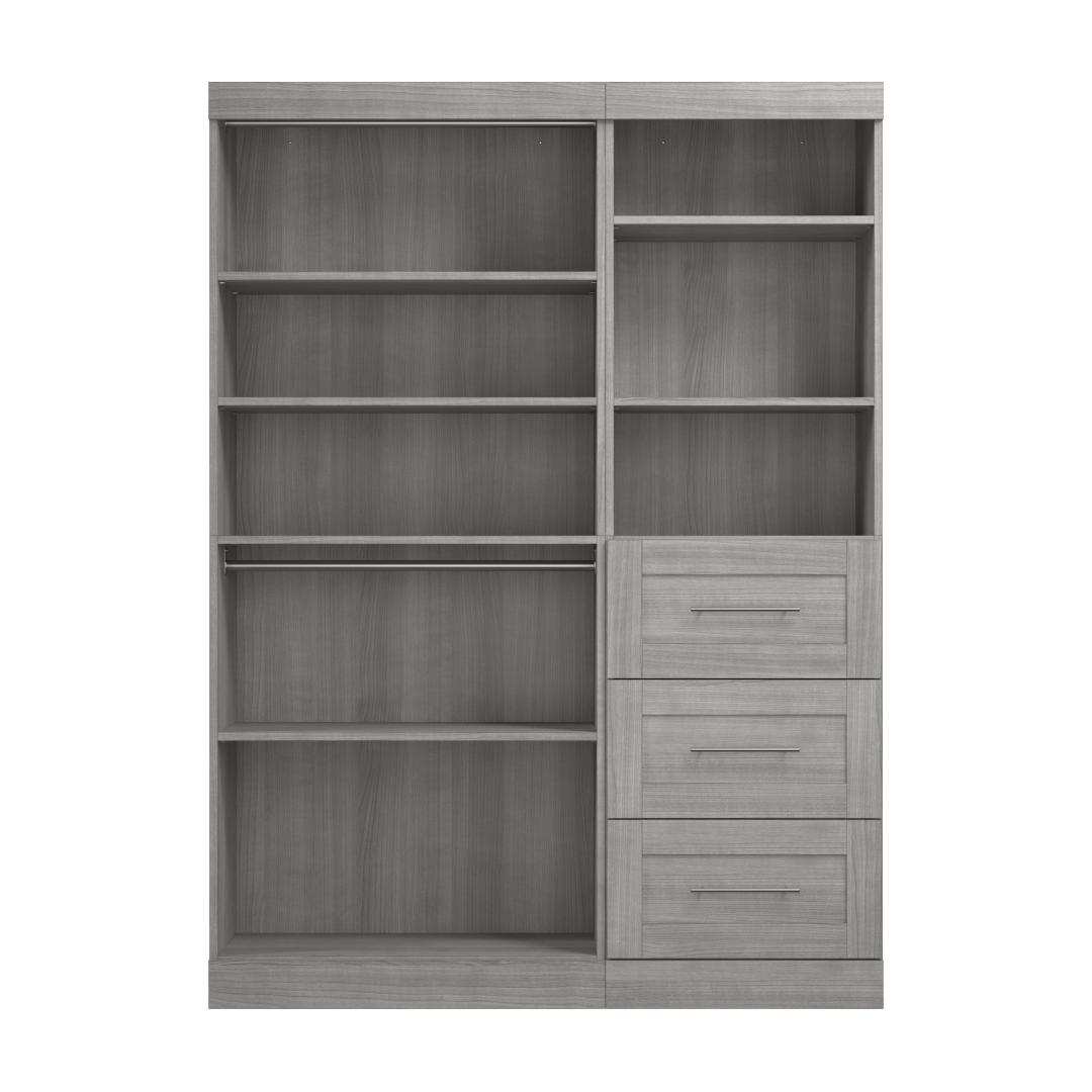 Contemporary Closet System with Shelves, Drawers & Clothing Rods, 61W x 19D