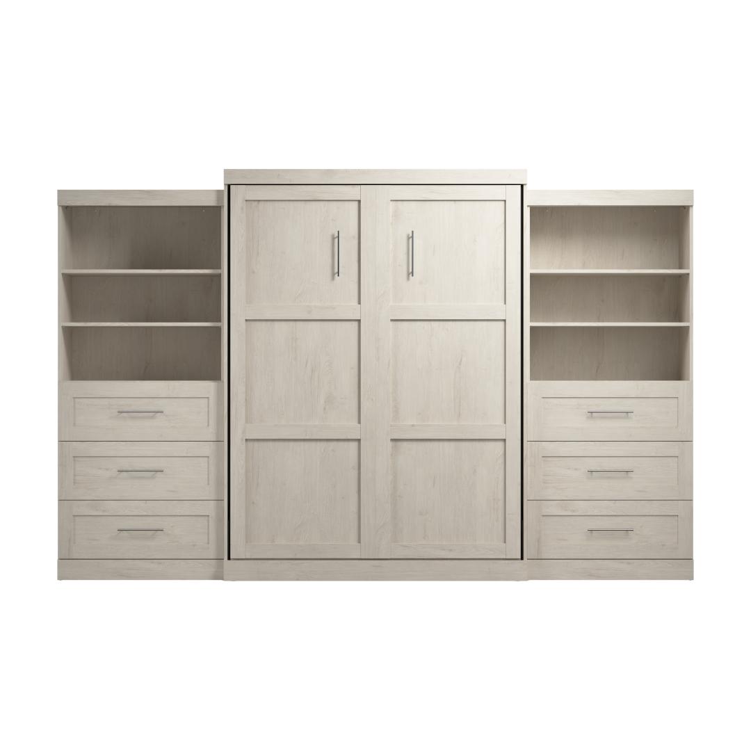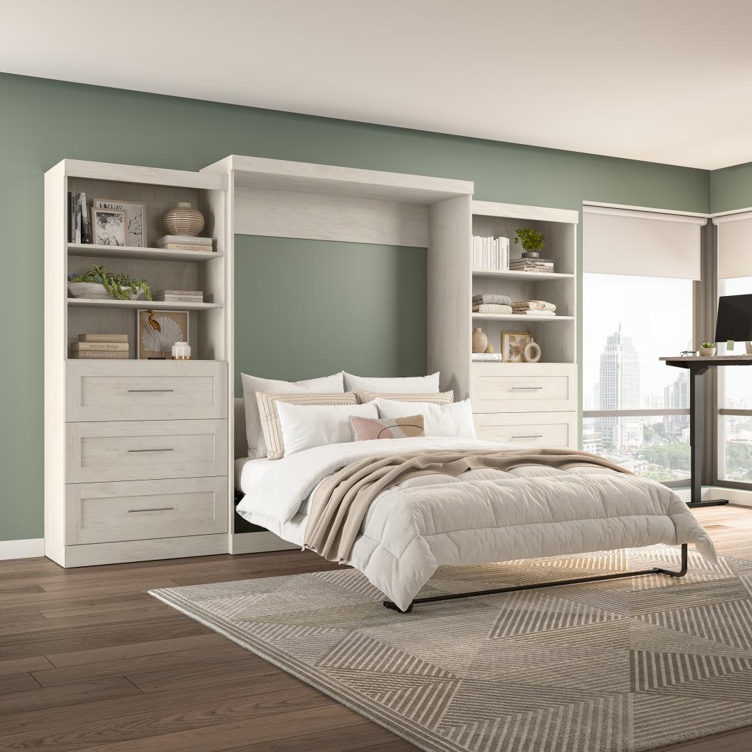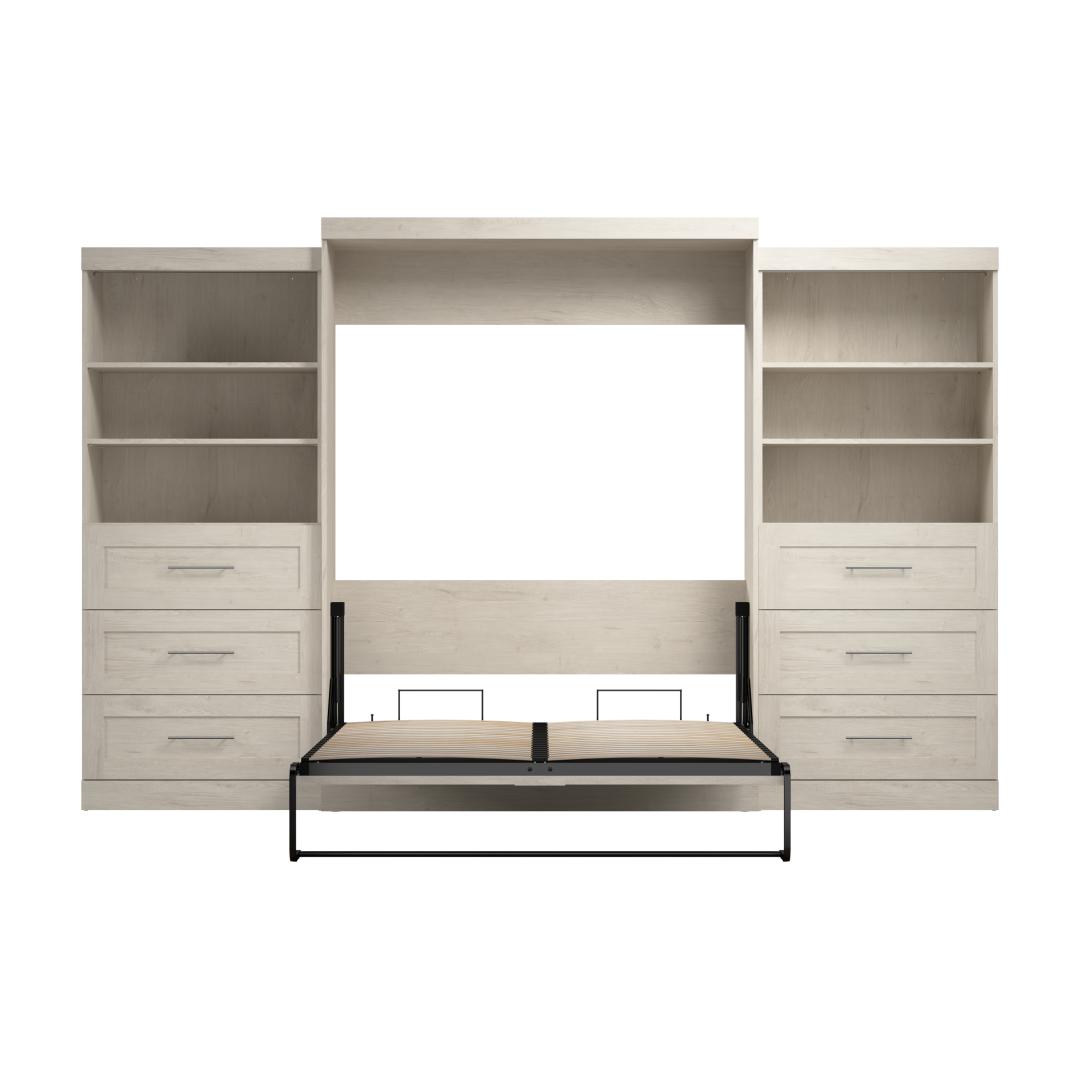 Queen Murphy Bed and 2 Shelving Units with Drawers (136W)