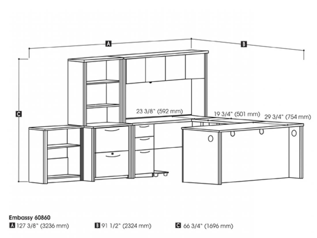 U-Shaped Executive Desk with Hutch, a Lateral File Cabinet, and a Bookcase